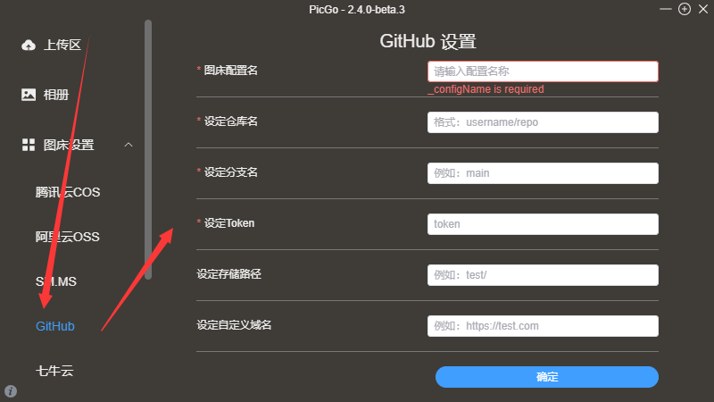- 存储路径:仓库下的具体路径。如果名称不存在,PicGo 会在图片上传时自动创建文件夹。
