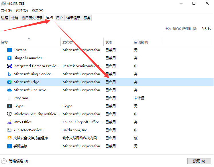 - 点击 启动,找到edge浏览器,右键单击选择禁用即可