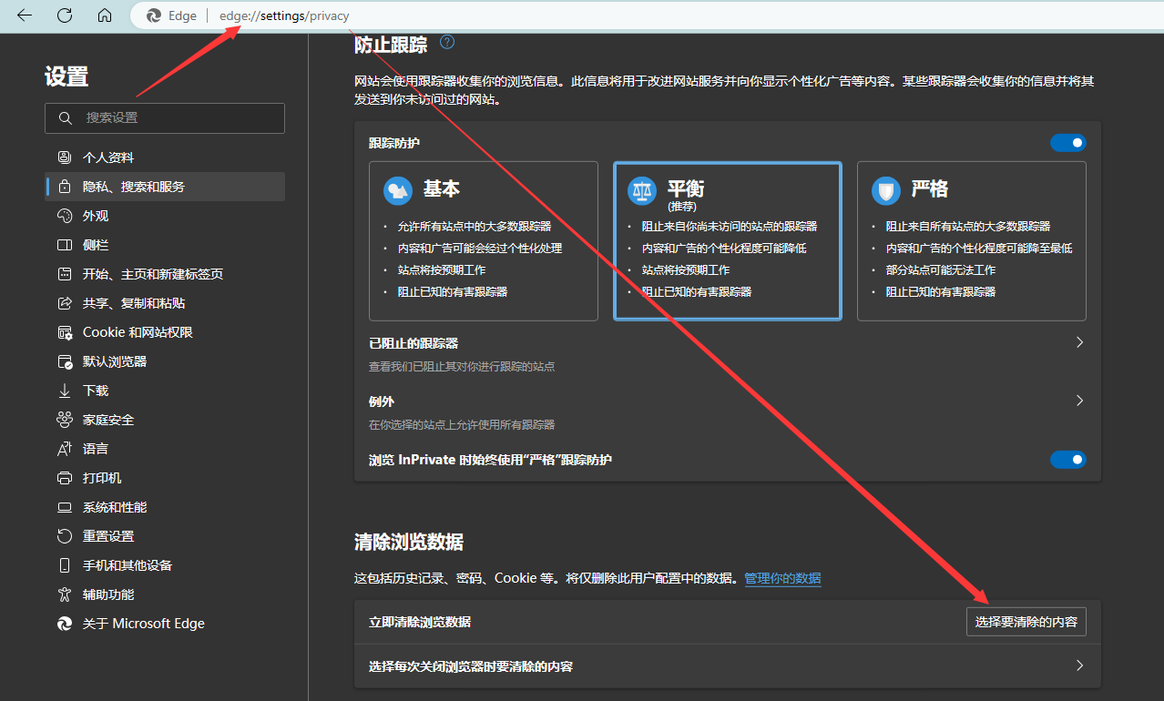 edge://settings/privacy找到 清理浏览数据 选择即可